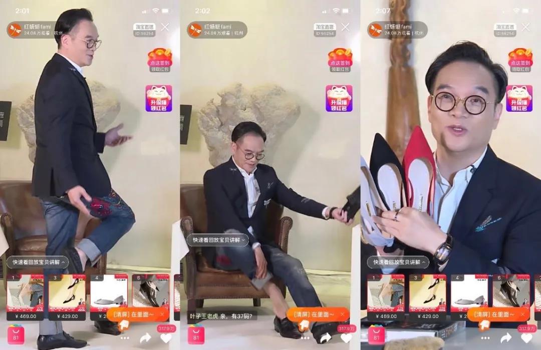 隔壁紅蜻蜓的創(chuàng)始人錢金波同樣瞄上了直播。三月八日,這位精致的董事長西裝革履,頭發(fā)梳地一絲不茍,然后對(duì)著鏡頭脫下了鞋襪,為網(wǎng)友們?cè)嚧┬印?/span>